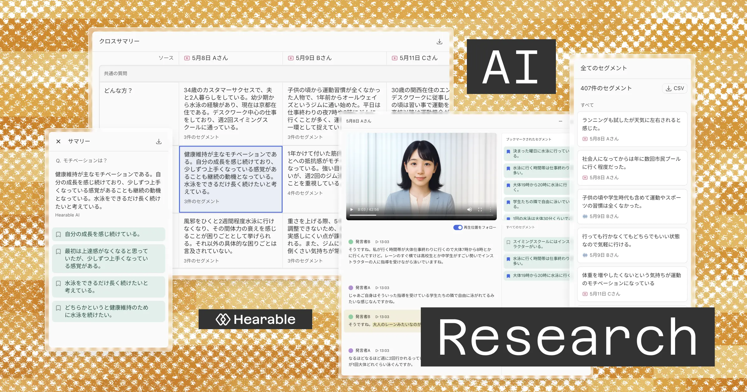私たちは、UXリサーチやマーケティングリサーチの調査結果をAIで分析・整理するサービス「Hearable」を開発・運営しているスタートアップ企業です。